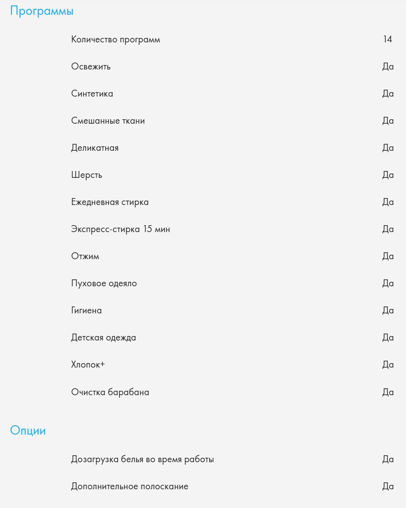 Режимы стирки |