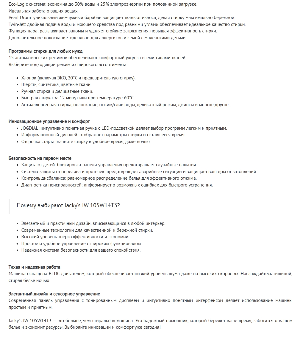 Стиральная машина Jacky's (Джекис) JW 105W14T3
