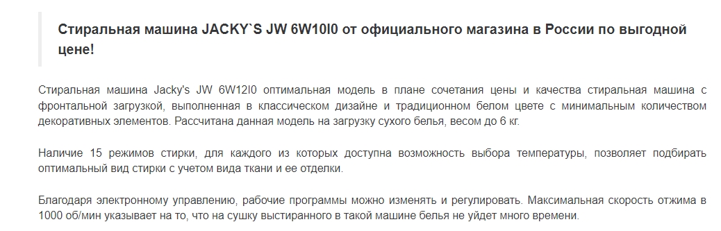 Стиральная машина Jacky's (Джекис) JW 6W10I0