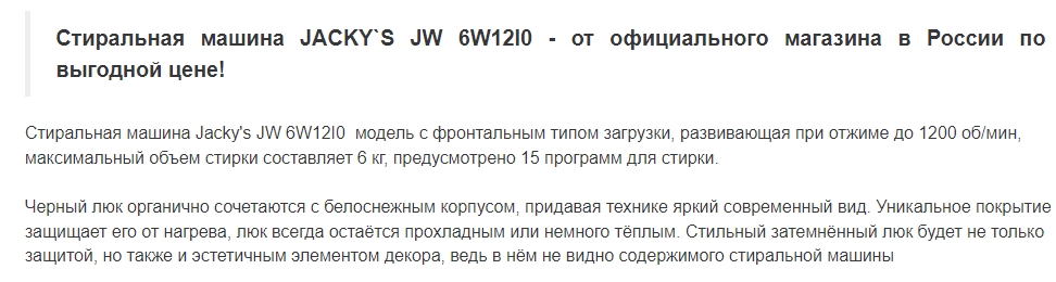 Стиральная машина Jacky's (Джекис) JW 6W12I0