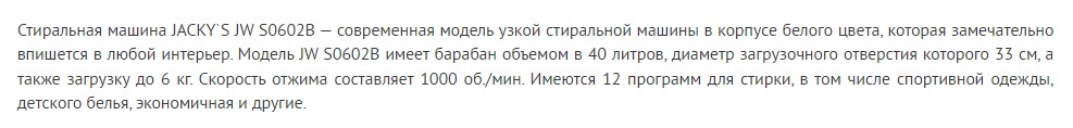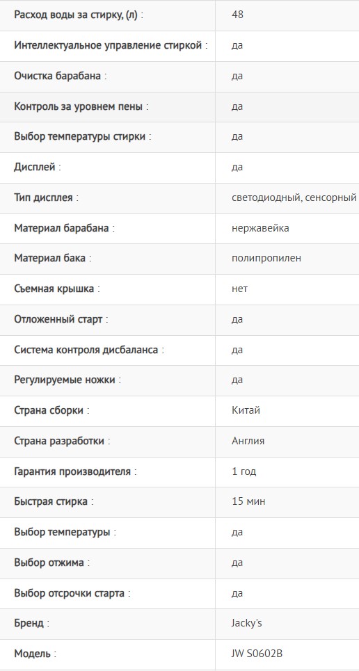 Стиральная машина Jacky's (Джекис) JW S0602B