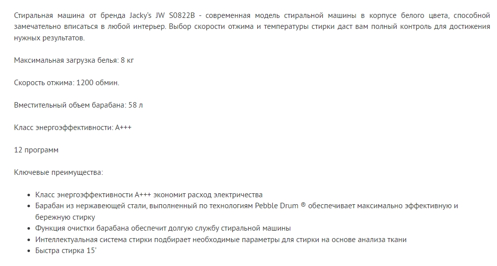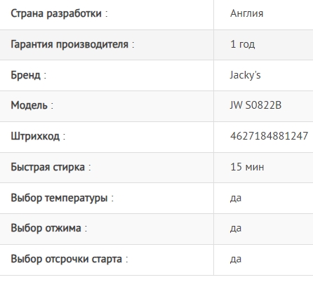 Стиральная машина Jacky's (Джекис) JW S0822B