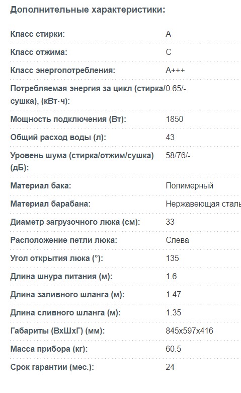 Класс эффективности отжима |