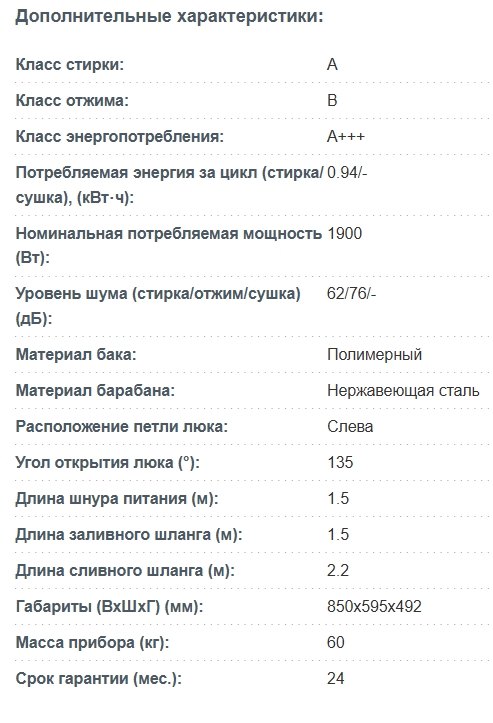 Класс эффективности отжима |