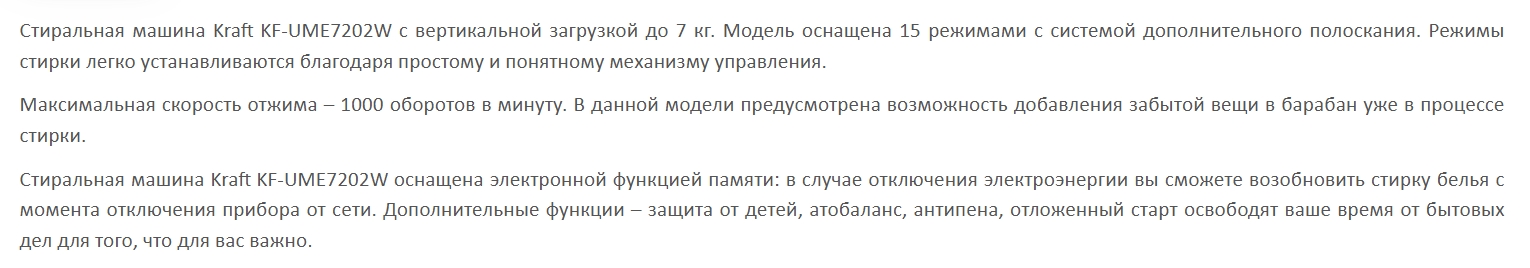 Стиральная машина Kraft (Крафт) KF-UME7202W