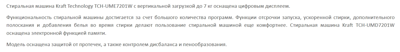 Стиральная машина Kraft (Крафт) TCH-UME7201W
