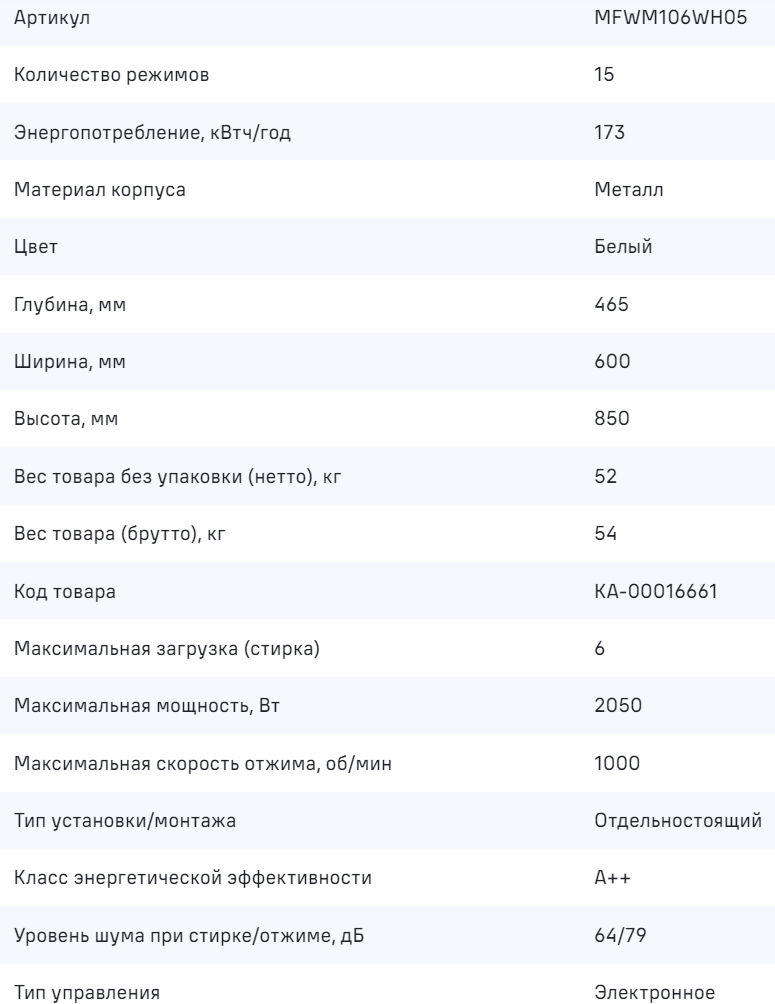 Стиральная машина MAUNFELD (Маунфилд) MFWM106WH05