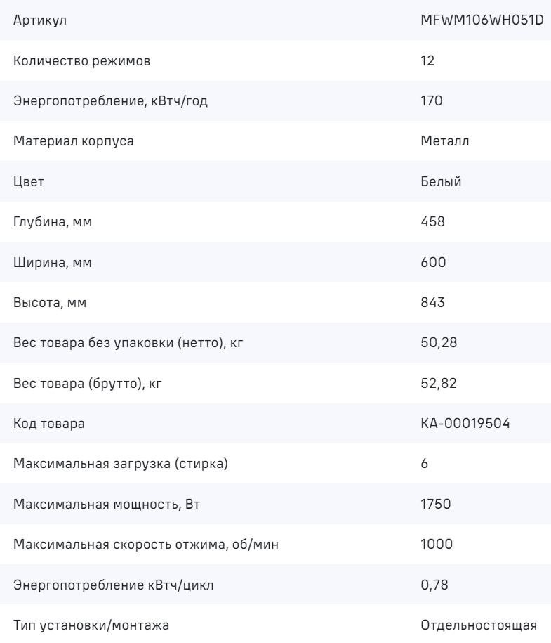 Стиральная машина MAUNFELD (Маунфилд) MFWM106WH051D
