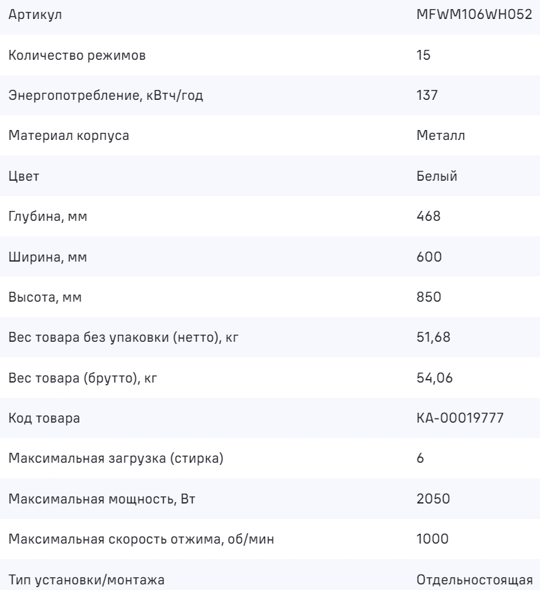 Стиральная машина MAUNFELD (Маунфилд) MFWM106WH052