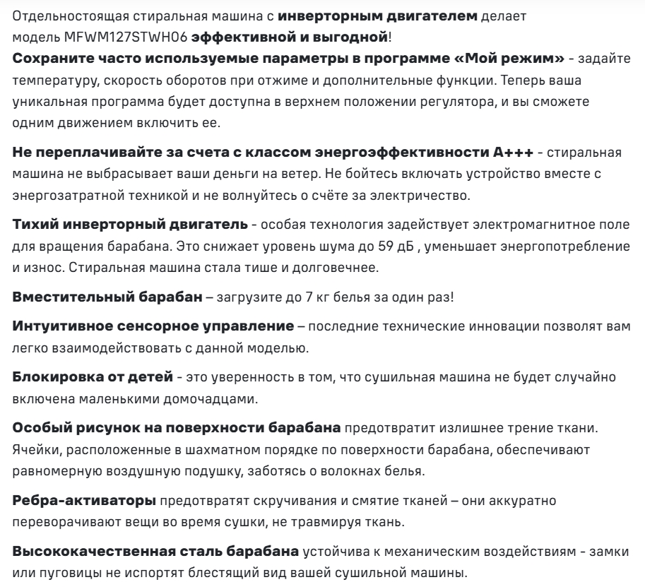 Стиральная машина MAUNFELD (Маунфилд) MFWM127STWH06