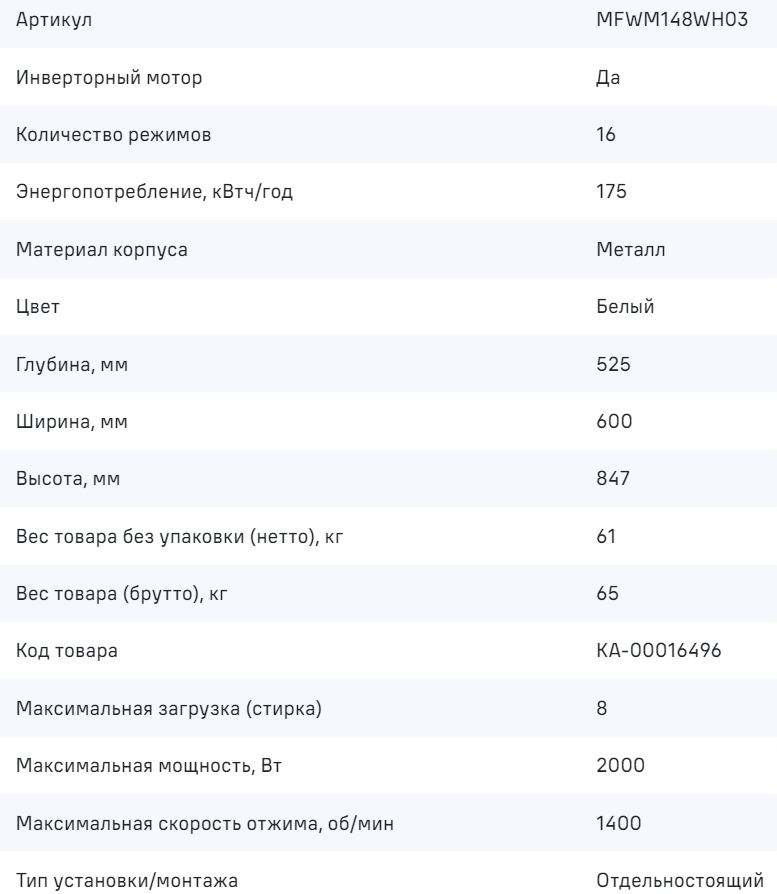 Стиральная машина MAUNFELD (Маунфилд) MFWM148WH03