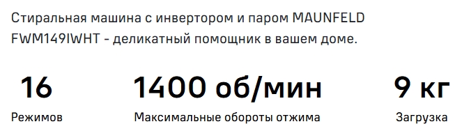 Стиральная машина MAUNFELD (Маунфилд) MFWM149IWHT