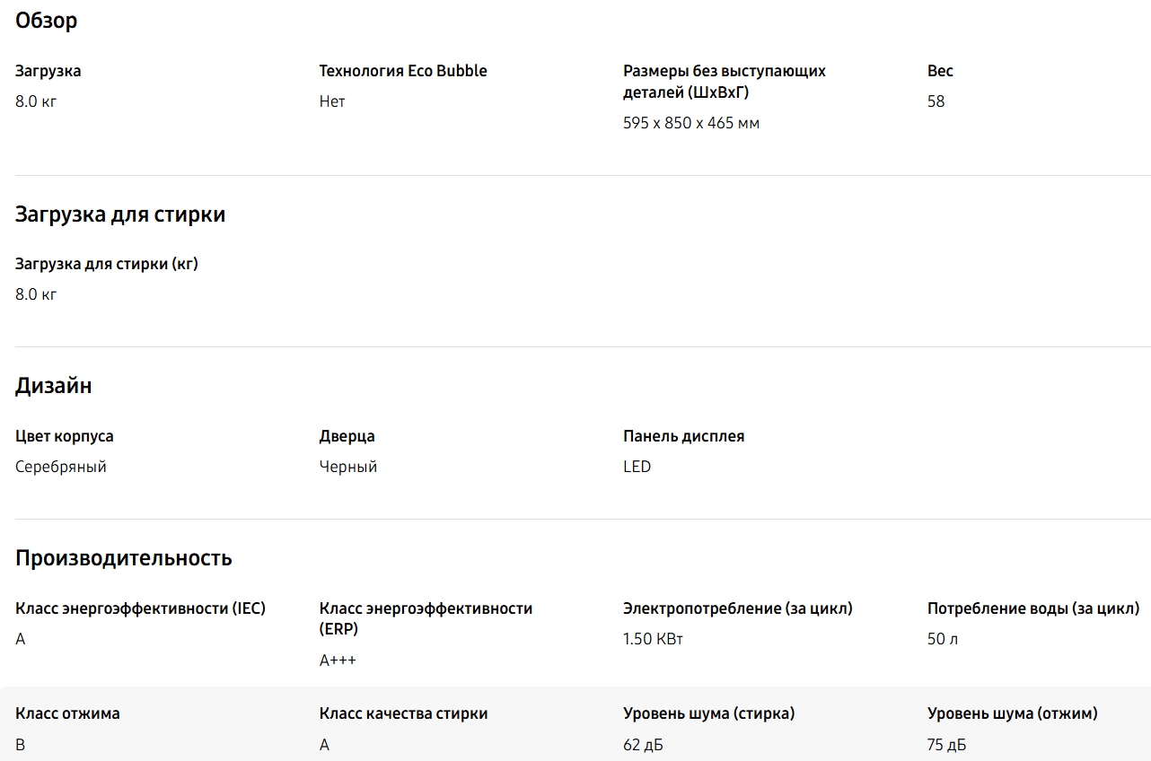 Стиральная машина Samsung (Самсунг) WW80T3040BS/LP