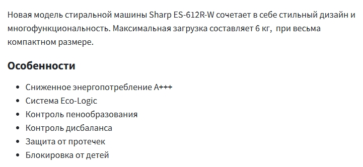 Стиральная машина Sharp (Шарп) ES-612R-W