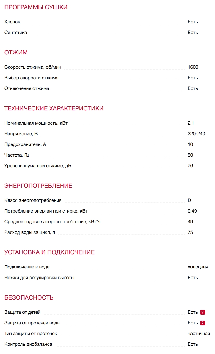 Класс эффективности отжима |