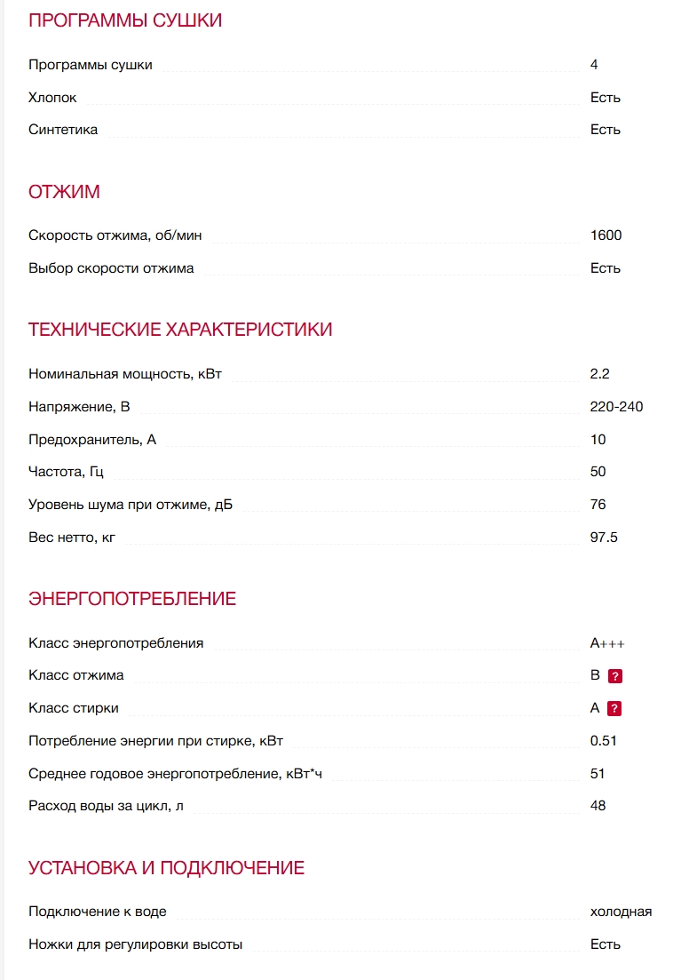 Класс эффективности отжима |