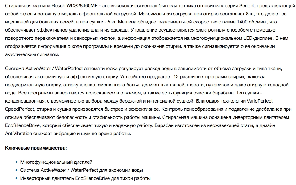 Стиральная машина с сушкой Bosch (Бош) WDS28460ME