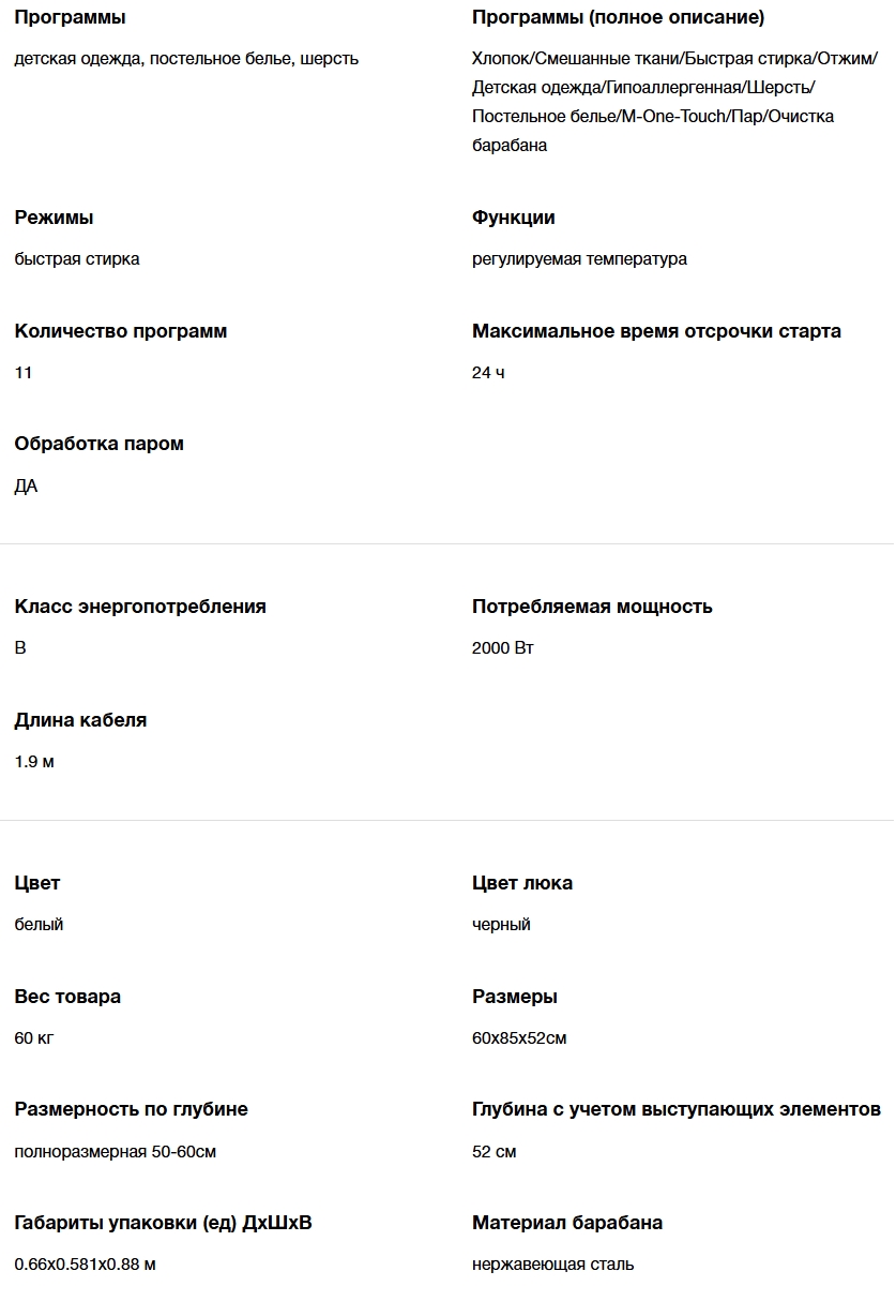 Режимы стирки |