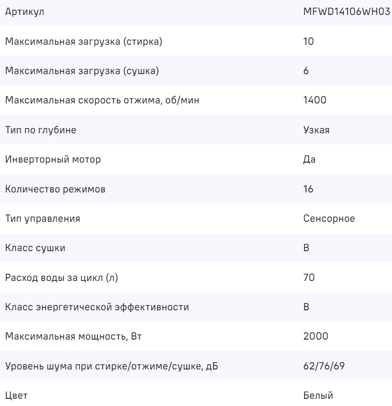 Стиральная машина с сушкой MAUNFELD (Маунфилд) MFWD14106WH03