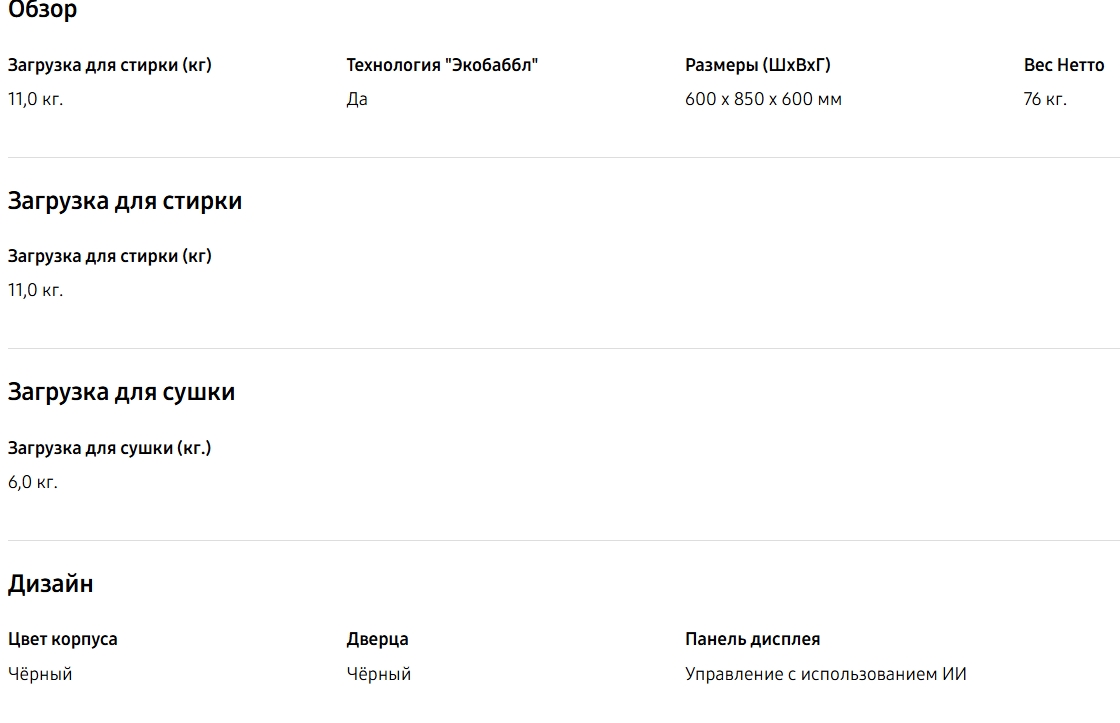 Стиральная машина с сушкой Samsung (Самсунг) WD11DG6B85BBLP