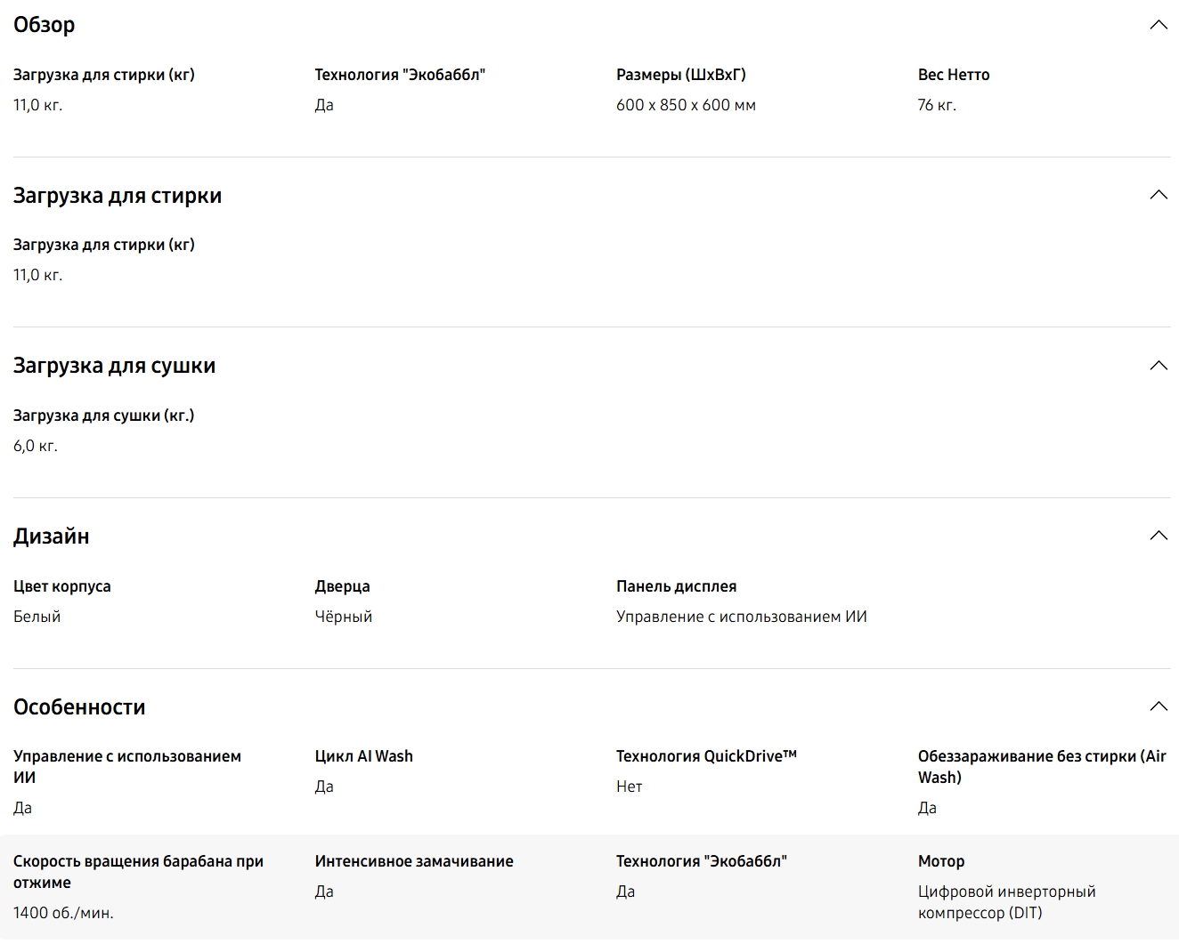 Стиральная машина с сушкой Samsung (Самсунг) WD11DG6B85BELP