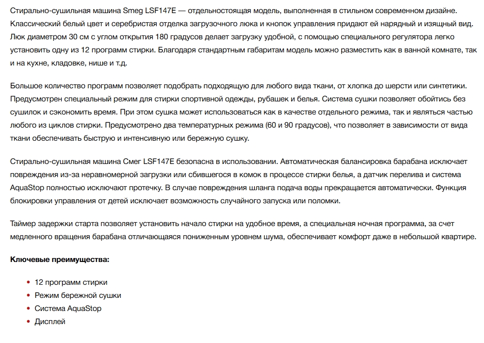 Стиральная машина с сушкой Smeg (Смег) LSF147E