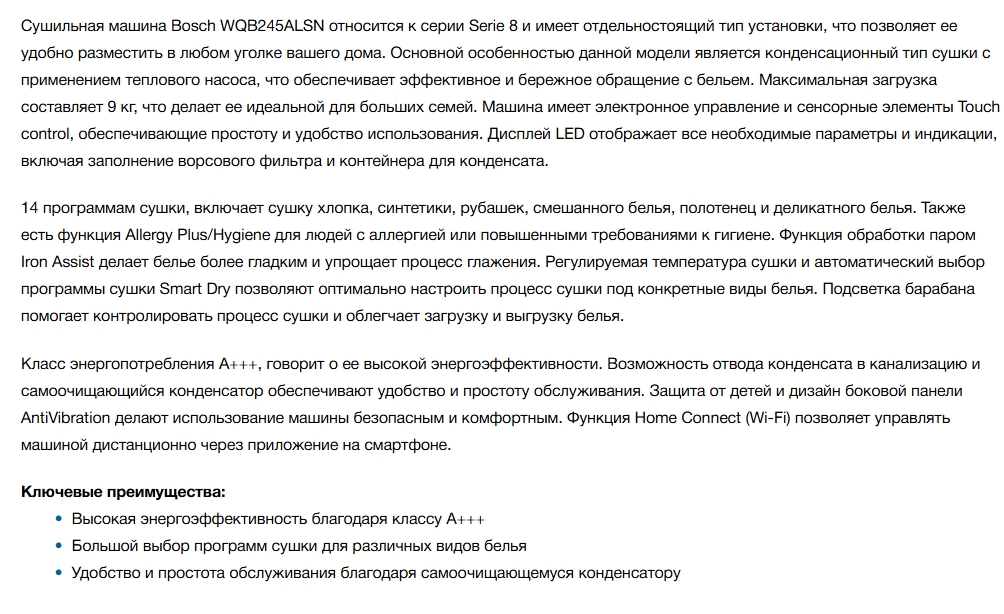 Сушильная машина Bosch (Бош) WQB245ALSN