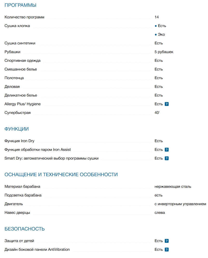 Количество программ сушки |