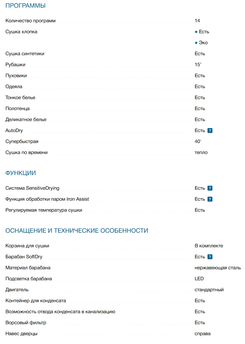 Количество программ сушки |