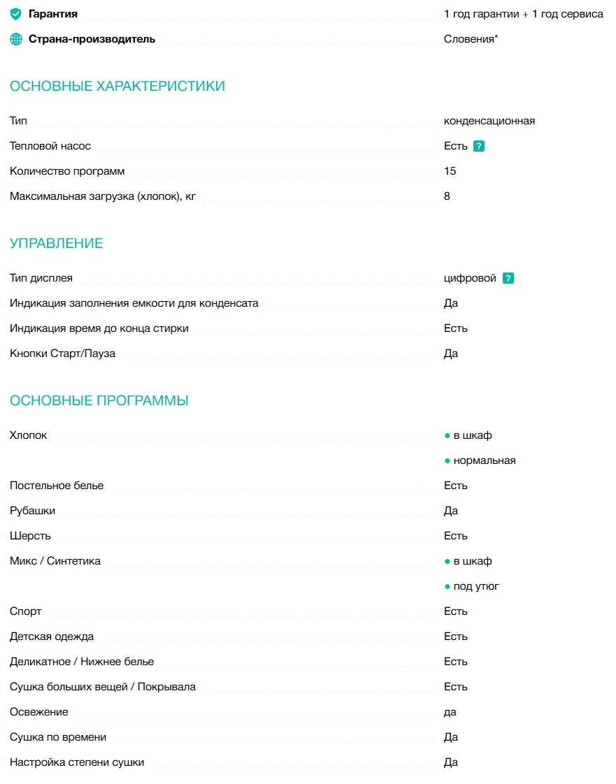 Класс эффективности сушки |