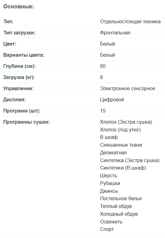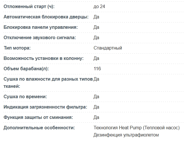 Количество программ сушки |