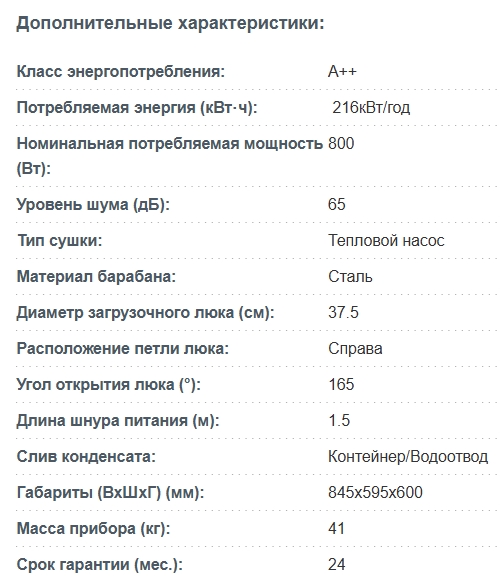 Класс эффективности сушки |
