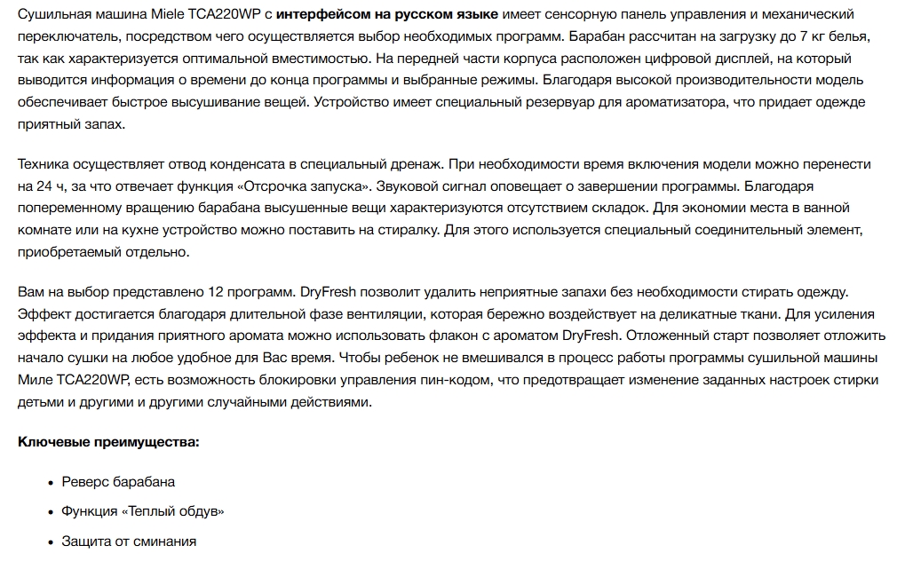 Сушильная машина Miele (Мили) TCA220WP