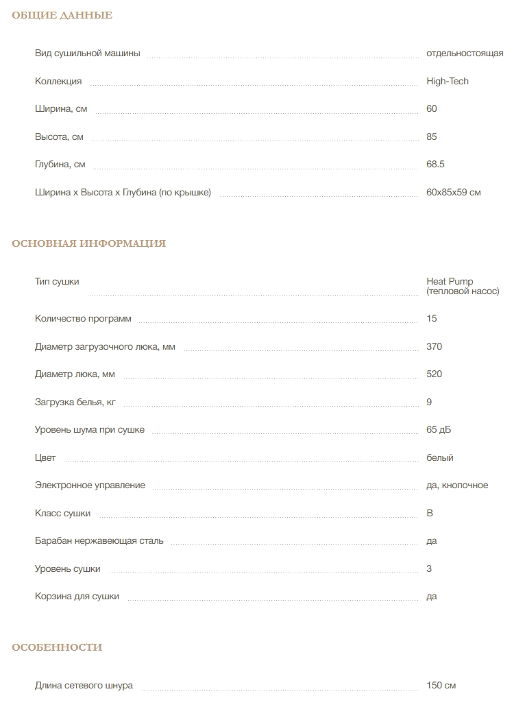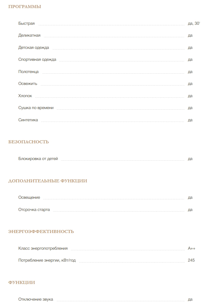 Количество программ сушки |