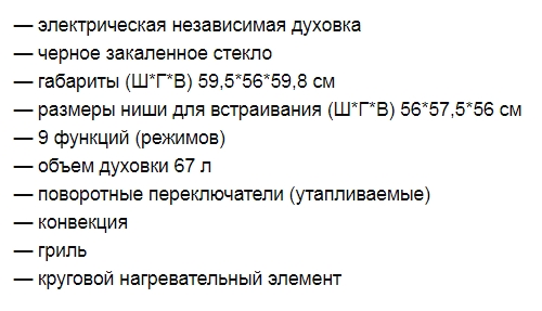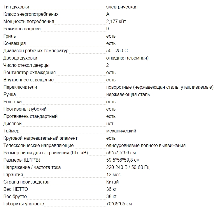 Объём духовки |