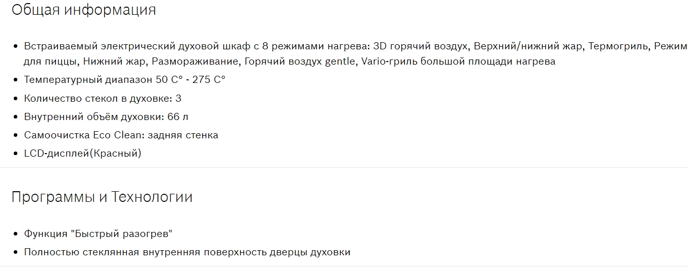 Объём духовки |