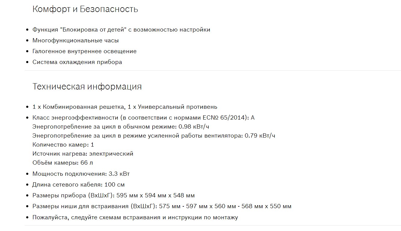 Объём духовки |