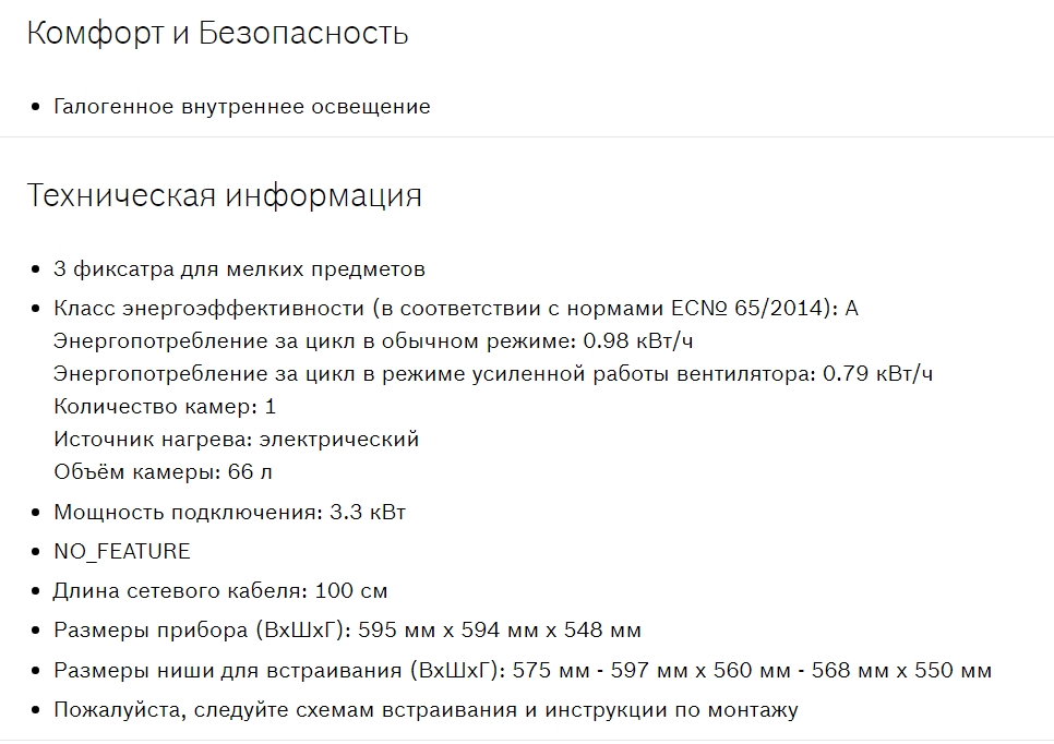 Объём духовки |