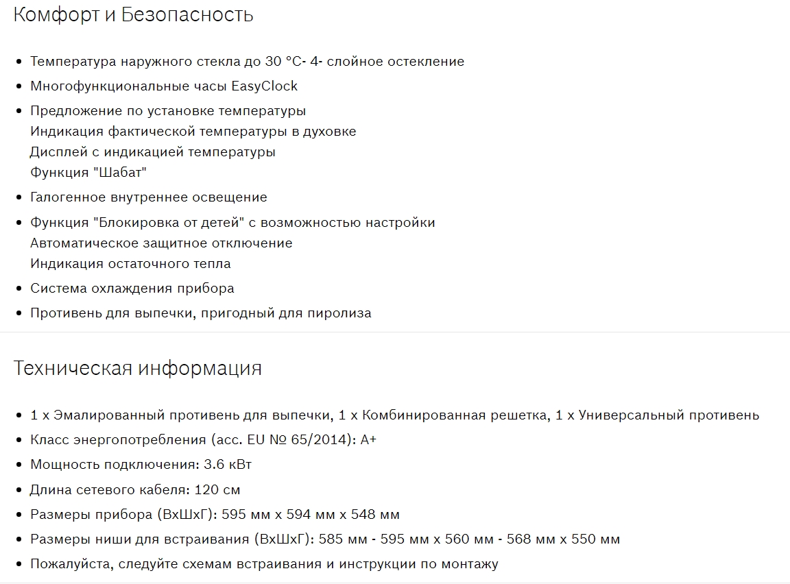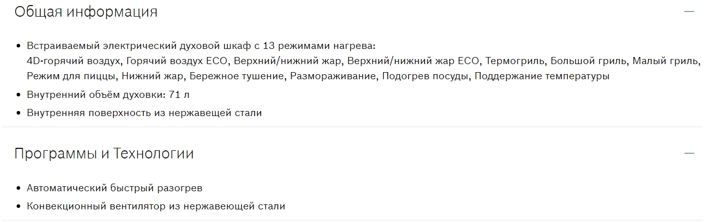 Объём духовки |