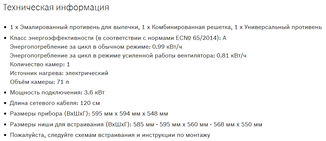 Объём духовки |