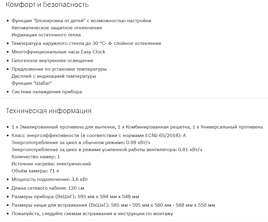 Объём духовки |