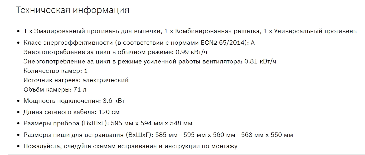 Объём духовки |