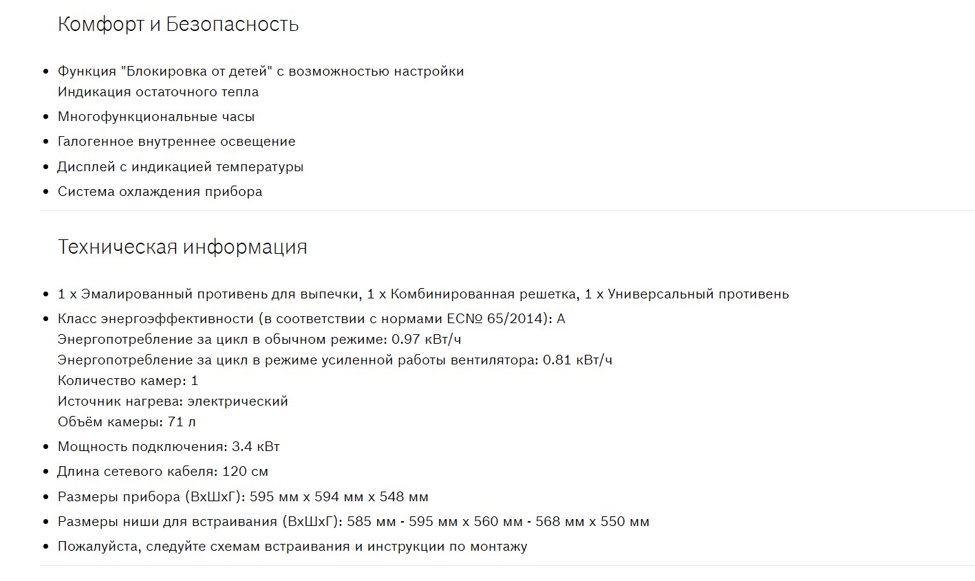 Объём духовки |