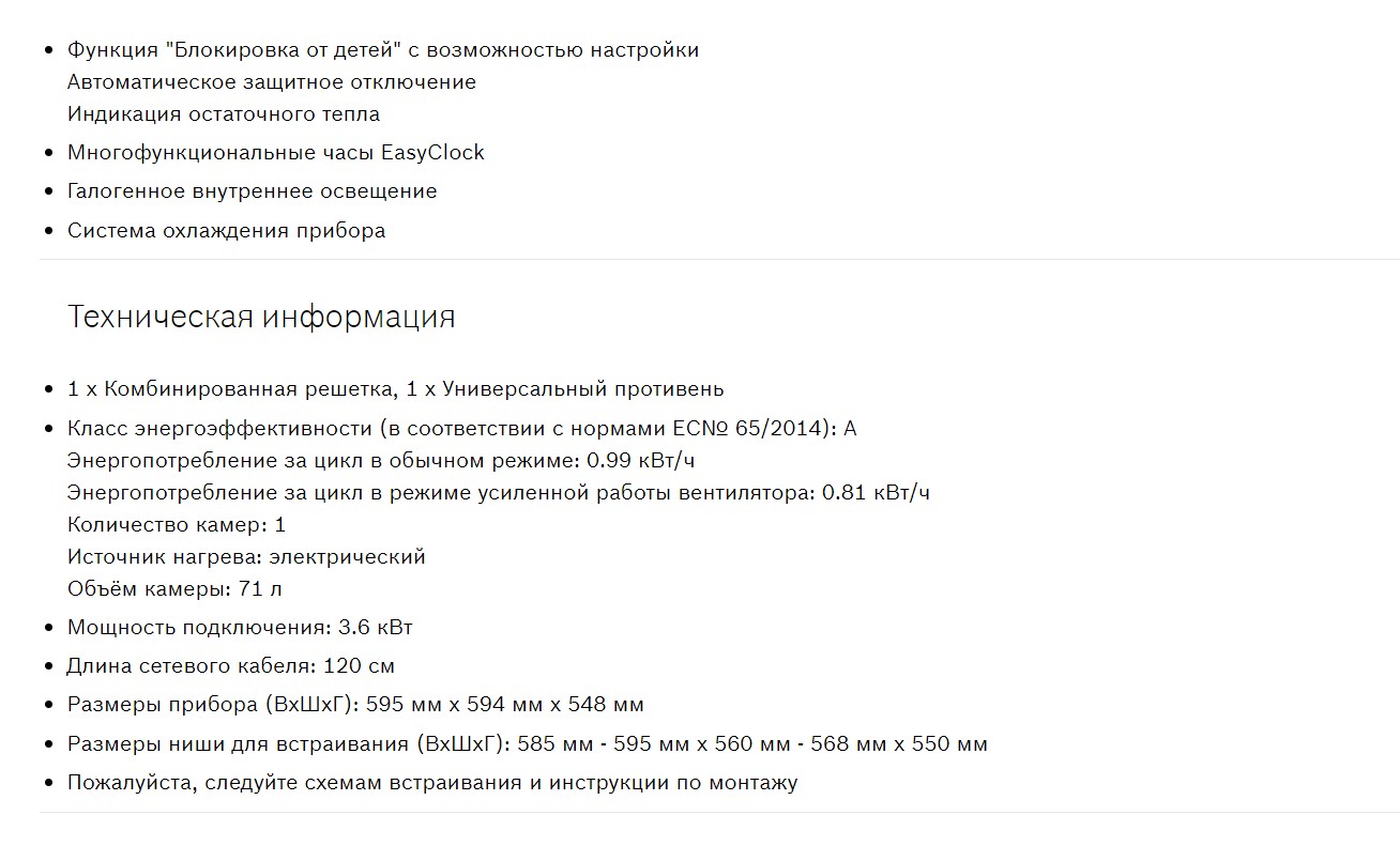 Объём духовки |