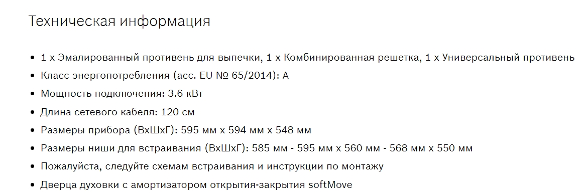 Объём духовки |