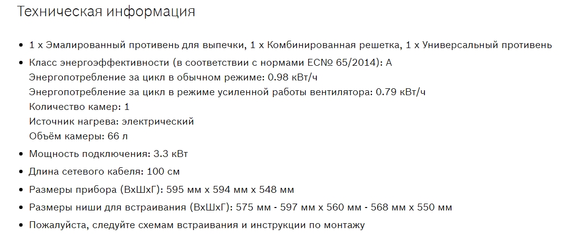 Объём духовки |