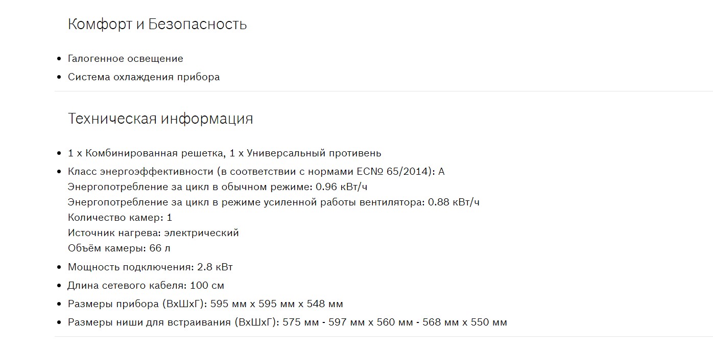 Объём духовки |