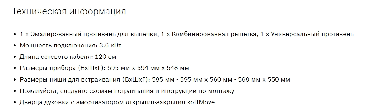 Объём духовки |