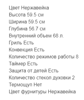 Объём духовки |