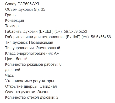 Объём духовки |